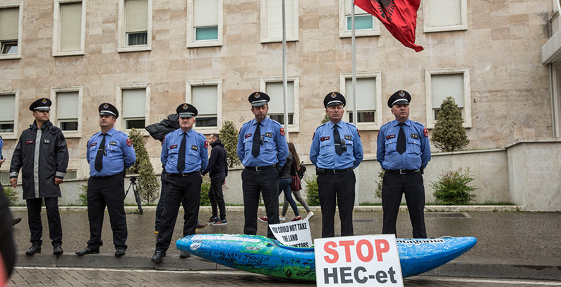 International environmental activists and domestic citizens gathered in Tirana in front of the office of prime minister Edi Rama to raise their voice against hydropower projects in Albania’s free-flowing rivers, particularly the Vjosa.