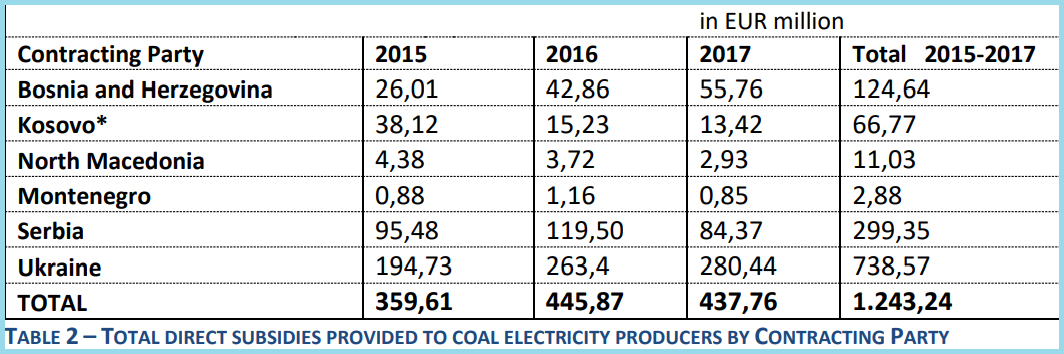 Serbia, BiH, Kosovo* paid EUR 160 million to the coal sector from 2015 to 2017
