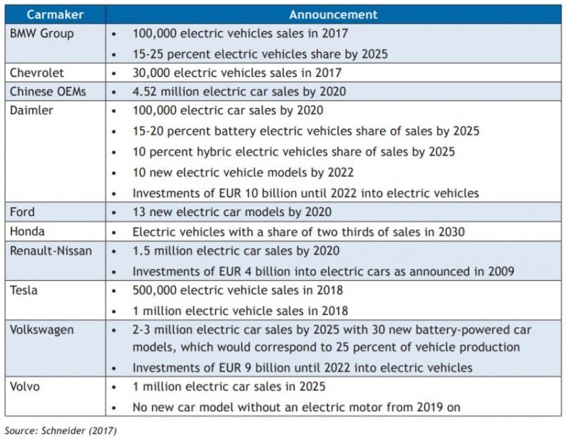 With battery and EV prices set to fall further, Bloomberg New Energy Finance (BNEF 2017) predicts that 54% of global car sales and 33% of the global car fleet will be electric by 2040 and the sector could enter virtuous growth between 2025 and 2030 without the need for subsidies. In addition, short-term regulatory support in key markets like the US, Europe and China, increased commitment from carmakers, growing consumer acceptance driven by competitively priced EVs across all vehicle classes and the growing role of car sharing, ride hailing and autonomous driving (termed “intelligent mobility”) will all drive increased EV deployment, according to the issue paper.