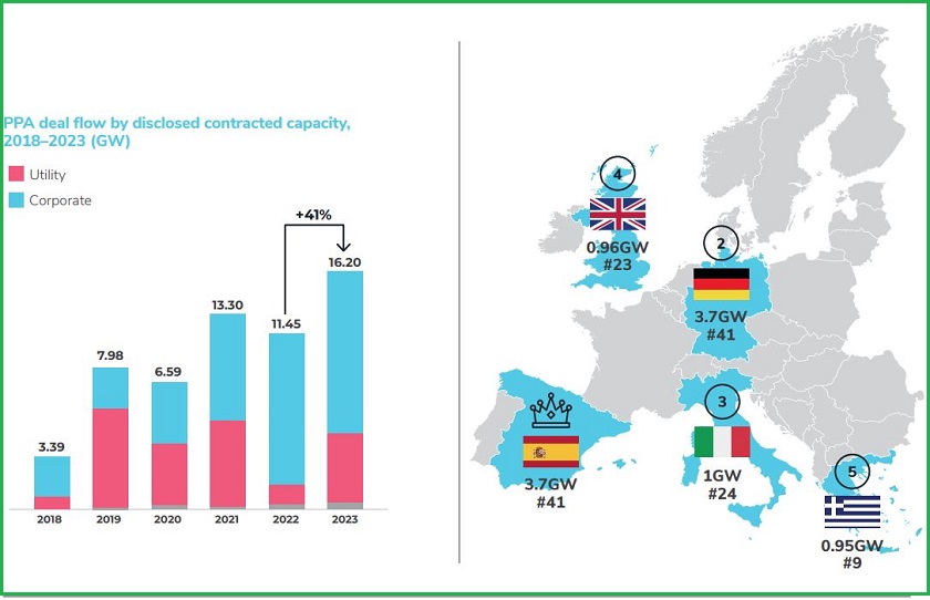 Spain and Germany accounted for PPAs with a capacity of 8.4 GW, or 51% of the total. The former kept its top position for a fifth consecutive year, the report reads.