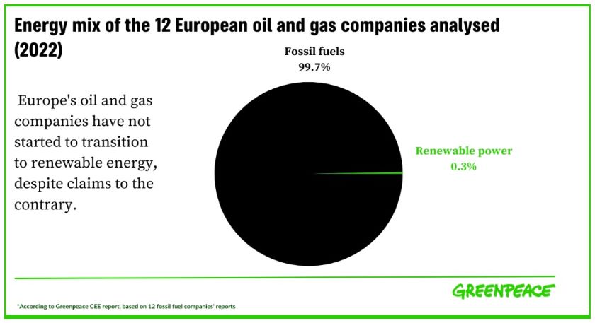 The twelve largest European oil companies are misleading the public about their readiness to reduce their own harmful impact on the climate through a gradual transition to renewable energy sources. This is the conclusion of an analysis commissioned by Greenpeace for Central and Eastern Europe (Greenpeace CEE).