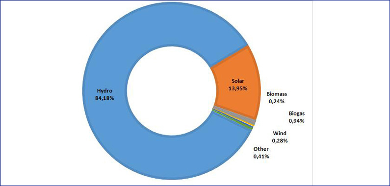 Figure 2. Share of OIE technologies in the installed capacity for electricity production in BiH under FiT tariff