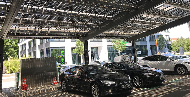 Fotografija 2: Solarna elektrana postavljena iznad parkinga EUREF Campus-a na kome se nalaze isključivo električna vozila