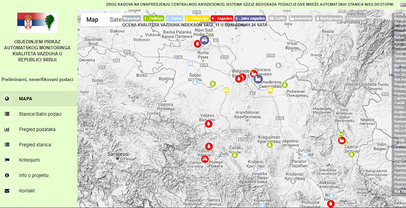 Koncentracija suspendovanih čestica PM10, prema podacima srpske Agencija za zaštitu životne sredine, poslednjih nekoliko dana dostizala je 100 mikrograma po kubnom metru u Nišu, 130 u Valjevu, 180 na Novom Beogradu, u beogradskoj opštini Stari Grad i Boru 250 (zagađenje u ovom gradu nateralo je građane da izađu na ulice), a u Pančevu čak 490 mikrograma po kubnom metru. I danas ovi gradovi imaju povećane koncentracije čestica PM10, dok su na listi mesta sa zagađenim vazduhom Beograd, Kosjerić, Užice, Niš, Beočin, Valjevo i Bor, a sa jako zagađenim vazduhom Pančevo, Novi Sad i Subotica.