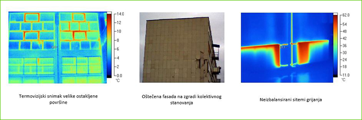 Slika 1: Prikaz i termovizijski snimci vanjske ovojnice i sistema grijanja/grijnih tijela