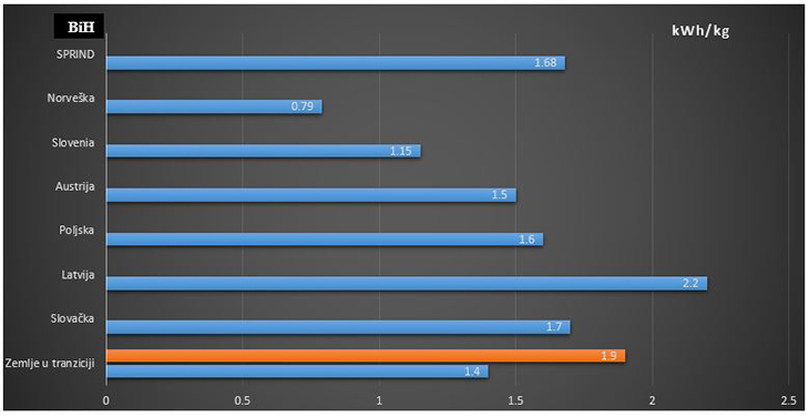 Slika 2: Specifična potrošnja energije u prehrambenoj industriji po jedinici proizvoda