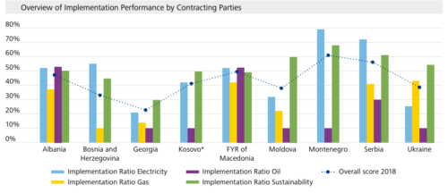 Prosečan stepen implementacije propisa u članicama Energetske zajednice (EnZ) je oko 43%, navodi se u Godišnjem izveštaju o implementaciji Sekretarijata EnZ, i naglašava potreba završetka prve tranzicije, od zatvorenih, postsocijalističkih energetskih sektora do regionalno integrisanih tržišta, kako bi bila uspešna druga tranzicija, ka zelenoj energiji, koja trenutno transformiše Evropu i svet.