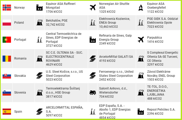 Prošle godine se prvi put desilo da najveći emiter CO2 u Holandiji i u Španiji budu čeličane na ugalj, koje su tu titulu ponele i u Velikoj Britaniji, Francuskoj, Austriji, Finskoj i Slovačkoj, navodi se u izveštaju.