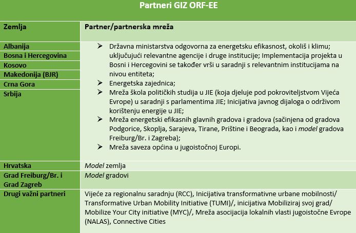 Njemačka Vlada putem GIZ Otvorenog regionalnog fonda za Jugoistočnu Evropu – Energetska efikasnost (ORF-EE) još od 2008. godine pruža podršku zemljama jugoistočne Evrope (JIE) u procesu integracije u EU u energetskom sektoru. ORF-EE aktivno doprinosi sektorskim reformama u Albaniji, Bosni i Hercegovini, Crnoj Gori, Kosovu, Makedoniji (BJR) i Srbiji. U okviru ORF-EE projekta, Hrvatska predstavlja model zemlju, s obzirom da je u sklopu procesa pridruživanja EU izvršila obimne reforme u ovom sektoru.