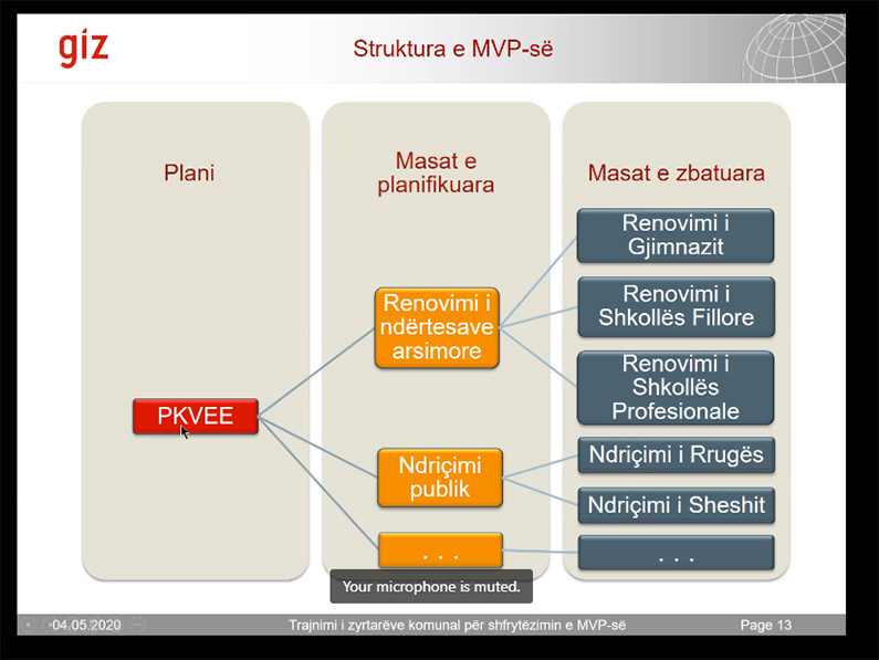 Energetski menadžeri iz 11 opština, zajedno s predstavnicima Kosovske agencije za energetsku efikasnost, Ministarstva ekonomije i Ministarstva okoliša i prostornog planiranja, prisustvovali su online obuci kako bi se upoznali s MVP alatom kao sredstvom za izvještavanje o planiranim i realizovanim projektima energetske efikasnosti.