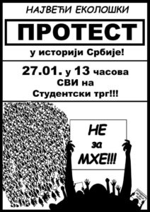 Inicijativa Odbranimo reke Stare planine organizuje u nedelju, u 13 sati, na Studentskom trgu u Beogradu, protest protiv gradnje malih hidroelektrana (MHE) pod sloganom „Kaži glasno NE za MHE“. Jedini zahtev je, kako navode, momentalno zaustavljanje izgradnje svih derivacionih MHE u Srbiji.