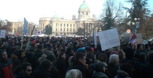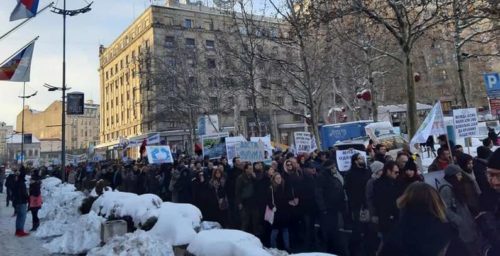 Na platou ispred Skupštine grada, u neposrednoj blizini Predsedništva Srbije, Nebojša Ilić zvani Ćama iz Saveza mesnih zajednica Stare planine, pročitao je pismo Staroplaninaca Aleksandaru Vučiću.