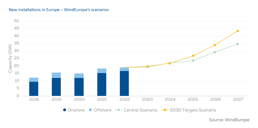 WindEurope očekuje da će u EU do 2027 biti instalisano još 98 gigavata, a u celoj Evropi 129 gigavata. Navodi da bi oko tri četvrtine trebalo da bude na kopnu.
