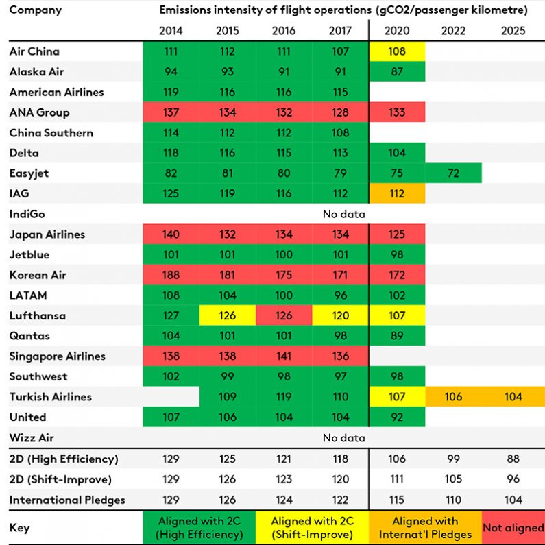 Easyjet je jedina avio-kompanija čiji letovi imaju takav intenzitet emisija CO2 da su u skladu sa ciljevima ograničenja porasta globalne temperature na 2 stepena Celzijusa nakon 2020.