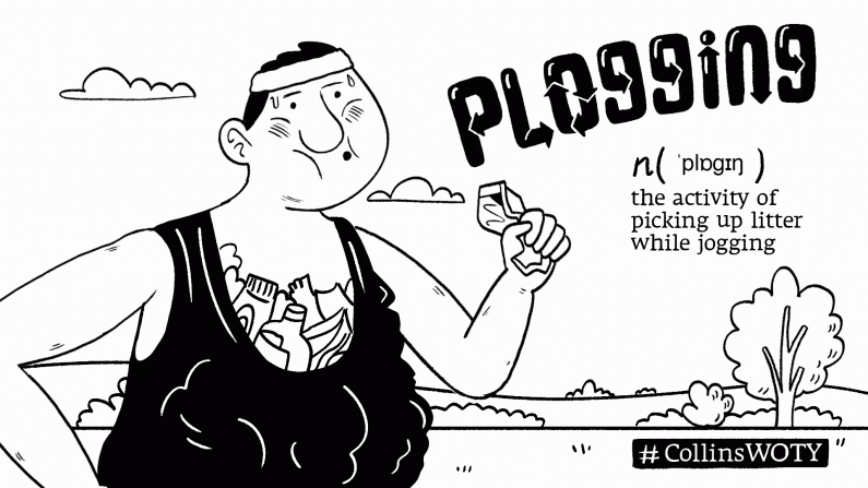 The shortlisted words include ‘plogging’, the activity of picking up litter while jogging.