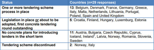 The report finds that in most cases tendering schemes have been set up as technology-specific rather than technology-neutral.
