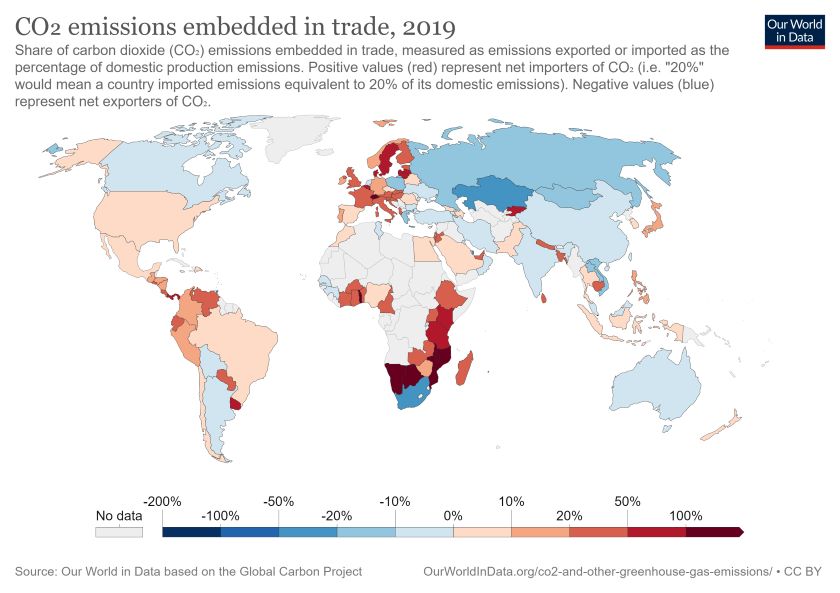 In Sweden, the percentage is almost three times higher. More than 60% of the country’s emissions recorded in 2019 originated abroad and are embedded in imports, according to Global Carbon Atlas.