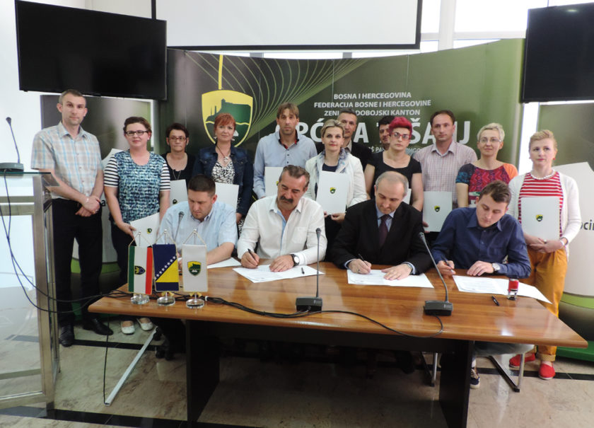 Mayor Suad Huskić, principals of nine primary and three secondary schools in the municipality of Tešanj, representatives of company Eko servis and association Eko mladi signed an agreement on the collection of batteries, light bulbs and small electronic waste.