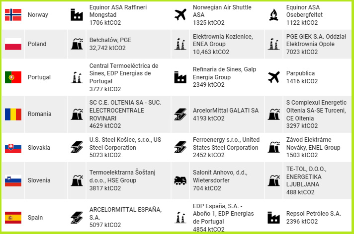 After coal-fired power plants, the second-largest group of emitters are cement factories – in Croatia, Cyprus, and Slovenia, and the third are the gas- and oil-fueled power plants in Cyprus.